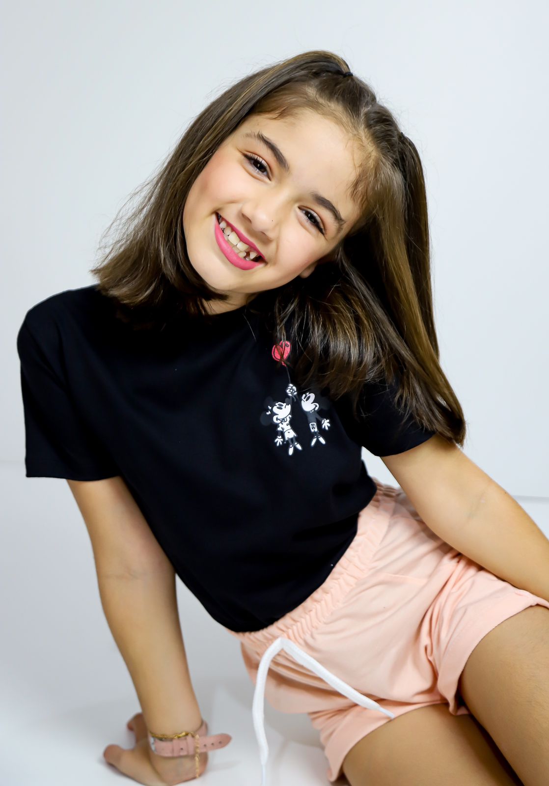 👕 Camiseta Colorida: Disponível em preto, branco e rosa, a camiseta combina com tudo e é feita de material macio e respirável, perfeito para manter a sua filha fresca e confortável durante o verão.